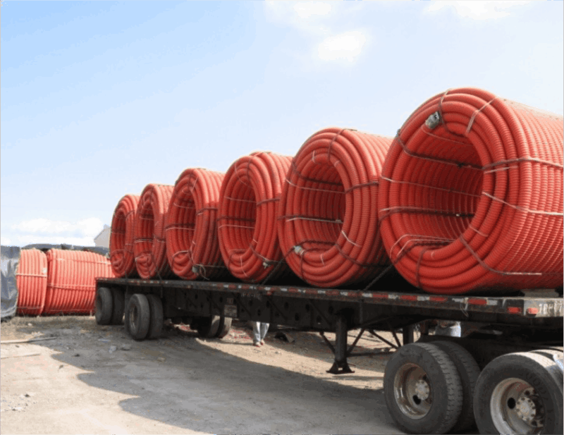 Высокопрочная кабельная труба спиральная – это труба, состоящая из наружной спиральной трубы и системы внутренних каналов, количество которых согласовывается с пожеланиями заказчика. Изготовлена из полиэтилена высокой плотности (ПНД, HDPE) трубной марки ПЭ 100. Трубы выполнены на основе ПЭ 100 и выдерживают высокие механические нагрузки.